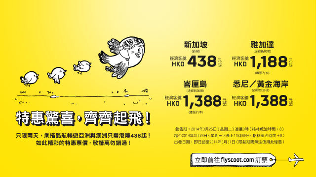 有興趣就上Scoot 酷航睇睇啦