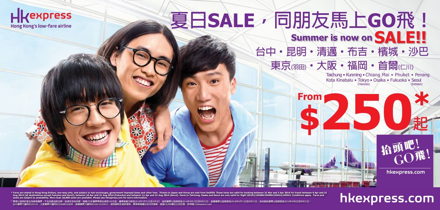 快搶!暑假旺季都有平!來回清邁$460、台中/昆明$560、沙巴/檳城$580、布吉$760、大阪$1,060、首爾/褔岡$1,160、東京$1,360 – HK Express (優惠至4月3日)