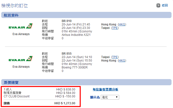 香港往返台北只需$838,用埋折扣代碼減$150,即$688,連稅只需$1,272,好抵下