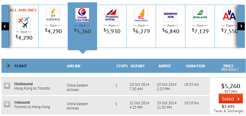 當中香港往返多倫多只需$5,260起,連稅$7,695起