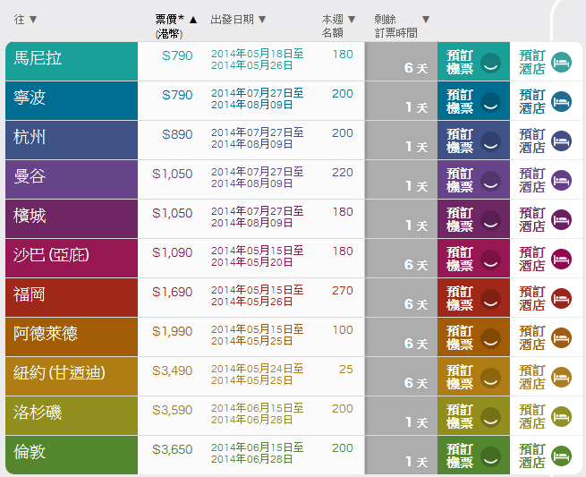 確實既出發日期就要到一陣8點由國泰港龍公佈,大家準時搶飛啦