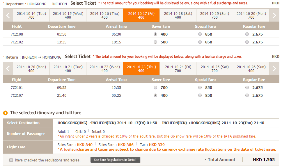 香港往返首爾只需$840起,連稅$1,565起,平過其他航空公司唔少,仲包20kg寄艙行李