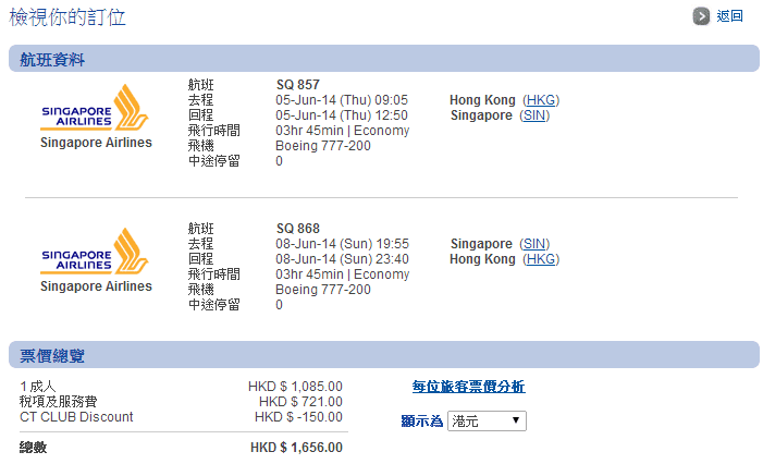 大家可以上Cheaptickets.hk / 新加坡航空官網訂購