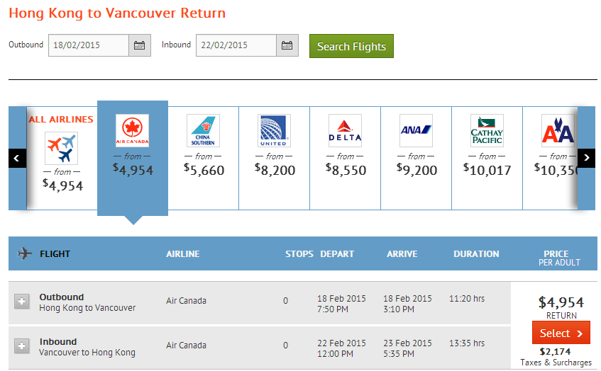 香港直航往返溫哥華只需$4,954,連稅$7,128,比起上個月既優惠貴左七百至八百
