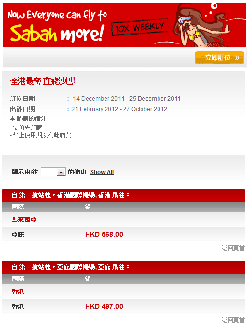 呢個價仲抵過之前亞航十周年優惠做既價錢,優惠聽日(12月14日)先開始,如果想係復活節呢o的大假出假,真係要今晚12:00am即刻衝入去訂