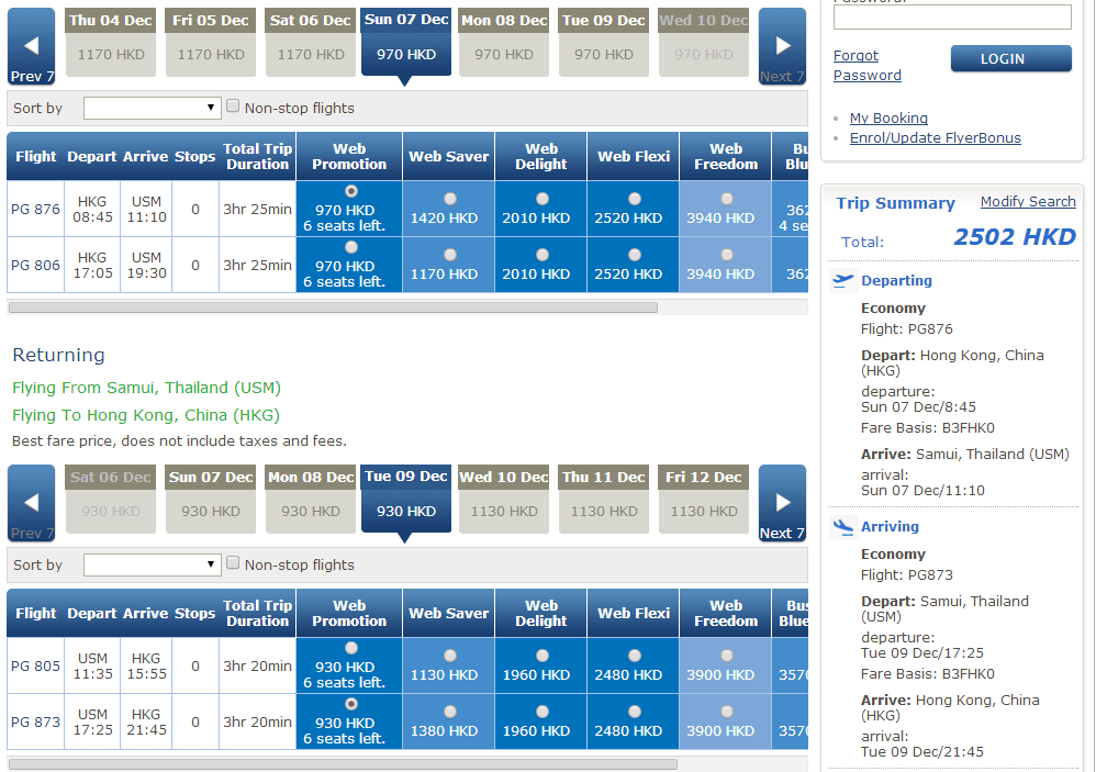 經我們測試,以12月7日出發,12月9日返回為例