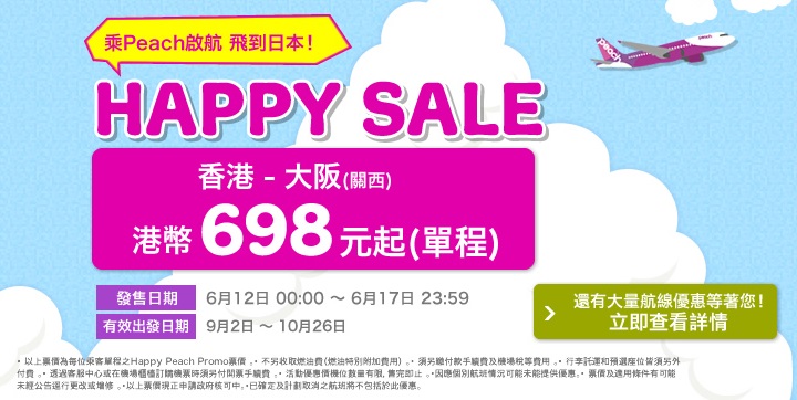 廉航樂桃將會係今晚12點(6月12日0:00)再度推出優惠,同上次優惠基本上一樣