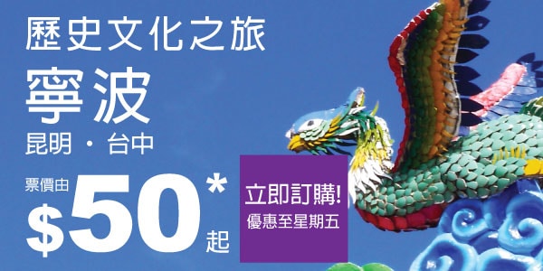 12月11日前出發!香港飛寧波來回$50,昆明$150,台中$310 – HK Express (優惠至6月20日)