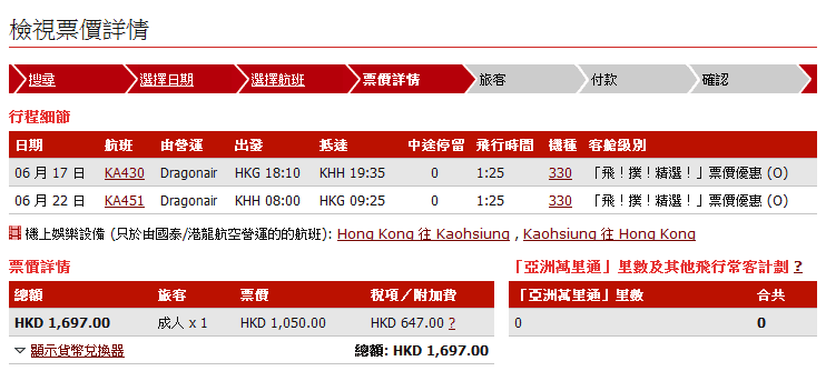 以高雄為例,機票連稅只需$1,697,平了不少