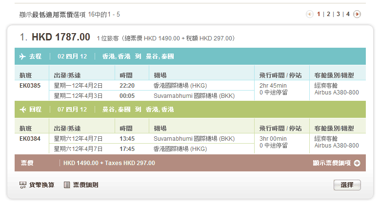 其實阿聯酋航空有香港直航泰國曼谷既航班,我地check過曼谷來回連稅都$1,787,頭等都係$5,137 (包稅),而且呢班機係用A380,呢個價有5星級服務再加上A380,抵啦