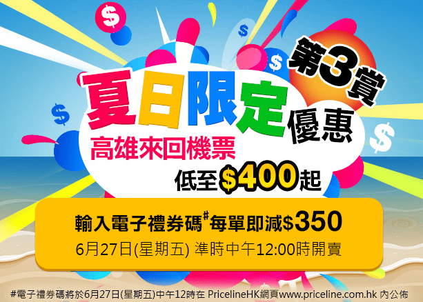 又有台灣平機票搶啦!Priceline HK 會係中午12點推出夏日限定優惠第3賞
