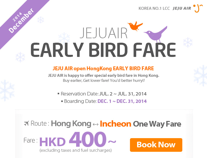 抵呀!12月出發!可凌晨機去晚機返!香港往返首爾只需$850起 – 濟州航空 (優惠至7月31日)
