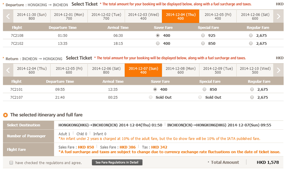 出發日期由12月1日至12月31日,不過聖誕旺季前後都唔見有平飛