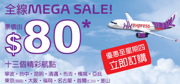 HK Express 將會係今晚12點推出Mega Sale優惠!所有航點都有平,當中日本同韓國價錢幾吸引下!