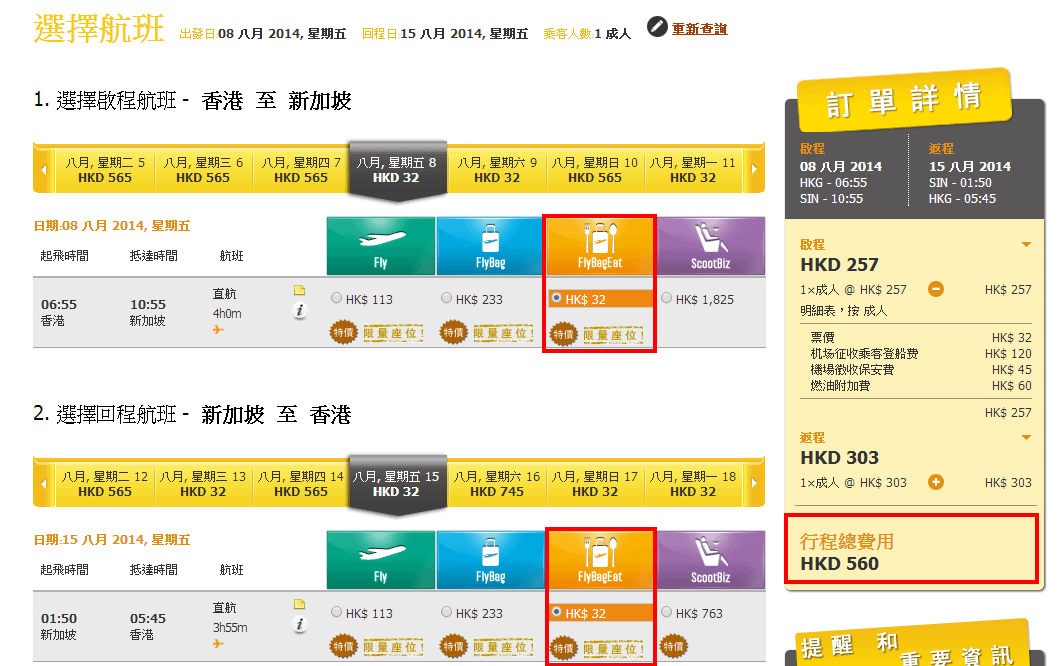 漏洞價,剛發現FlyBagEat(包15kg行李同飛機餐)既價錢仲平過剩機票既價錢!香港飛新加坡來回連稅只需$560,已包15kg行李同飛機餐,勁抵!手快有手慢無!