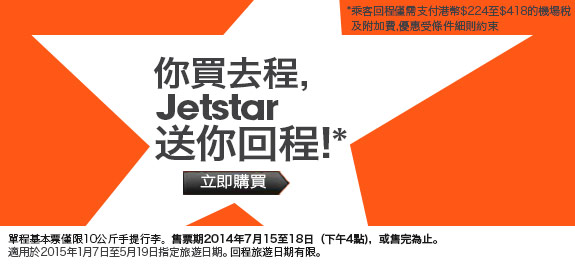 廉航 Jetstar 岩岩推出左買去程送回程機票優惠