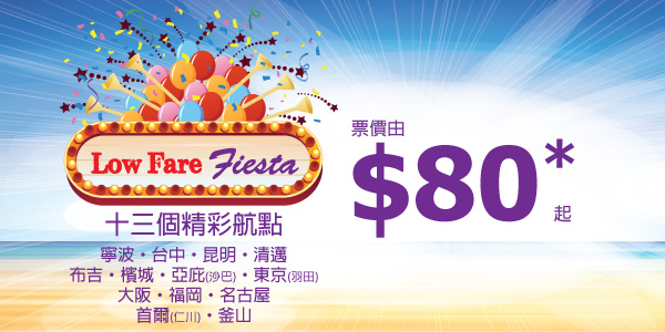 (台中$110 連稅$695)、(寧波$110 連稅$729)、(昆明$110 連稅$729)、(沙巴/檳城$110 連稅$776)、(清邁/布吉$110 連稅$788)、(首爾$510 連稅$1,236)、(大阪$510 連稅$1,252)、(福岡$710 連稅$1,292)、(釜山$710 連稅$1,397)、(名古屋$710 連稅$1,415)、(東京$710 連稅$1,423)