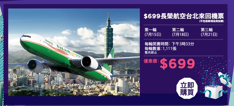 限量3,333張!11月30日前出發!香港往返台北只需$699 – 長榮航空