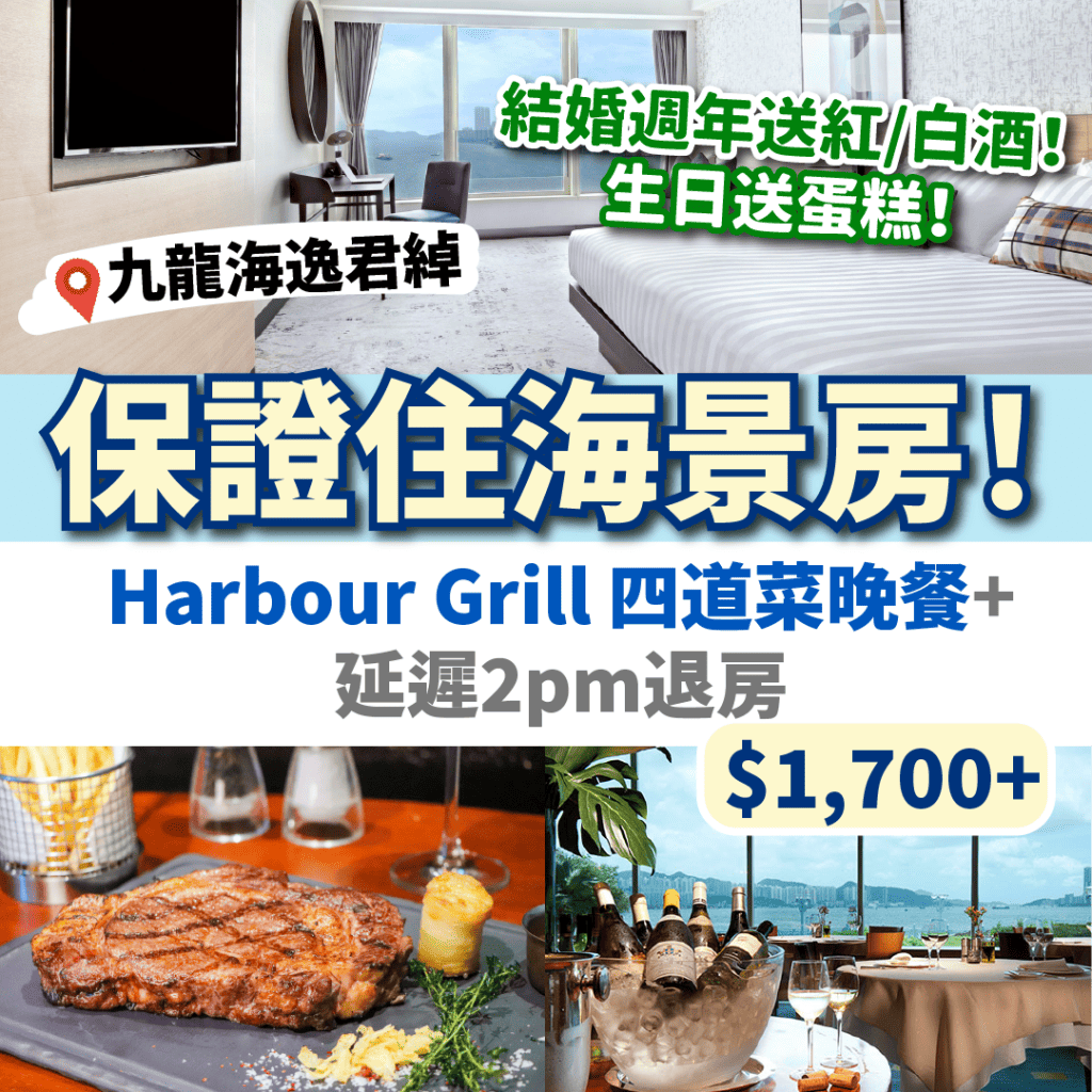 - 7折優惠:星期一至四自助晚餐配無限任飲指定紅白酒、氣泡酒、啤酒、汽水及果汁 每位港幣$648.2 (原價港幣$926)