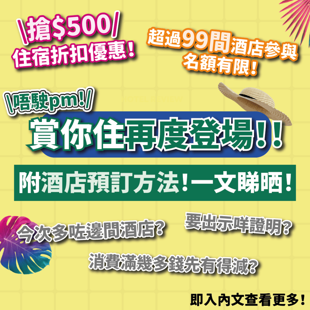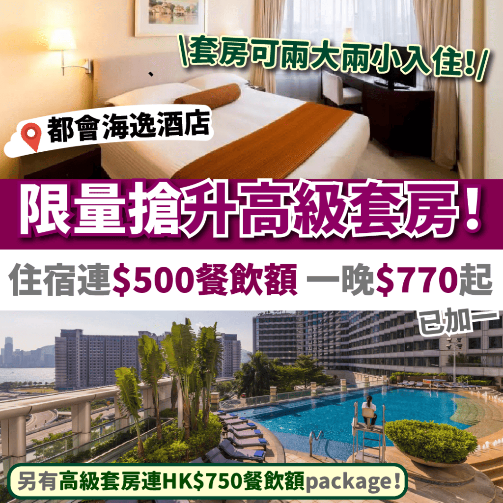 - 7折優惠:WET®泳池通行證,包括使用全港最高户外泳池WET®、海景健身中心FIT®、兩杯精選香檳及港幣$500元水療護理禮券,港幣$692起 (原價港幣$988)