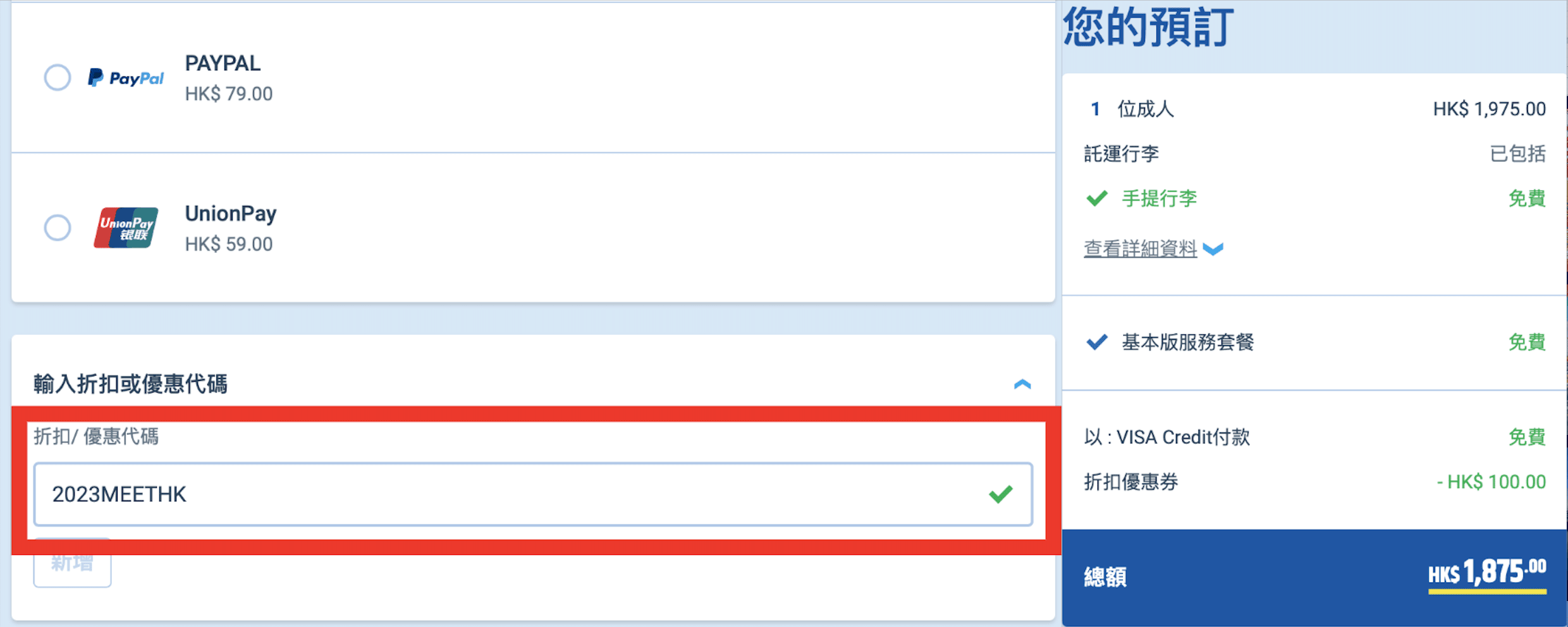 https://www.hutchgo.com.hk (二人同行減$100電子禮券碼:MEETHKGO,減完之後來回連稅$1,973起)