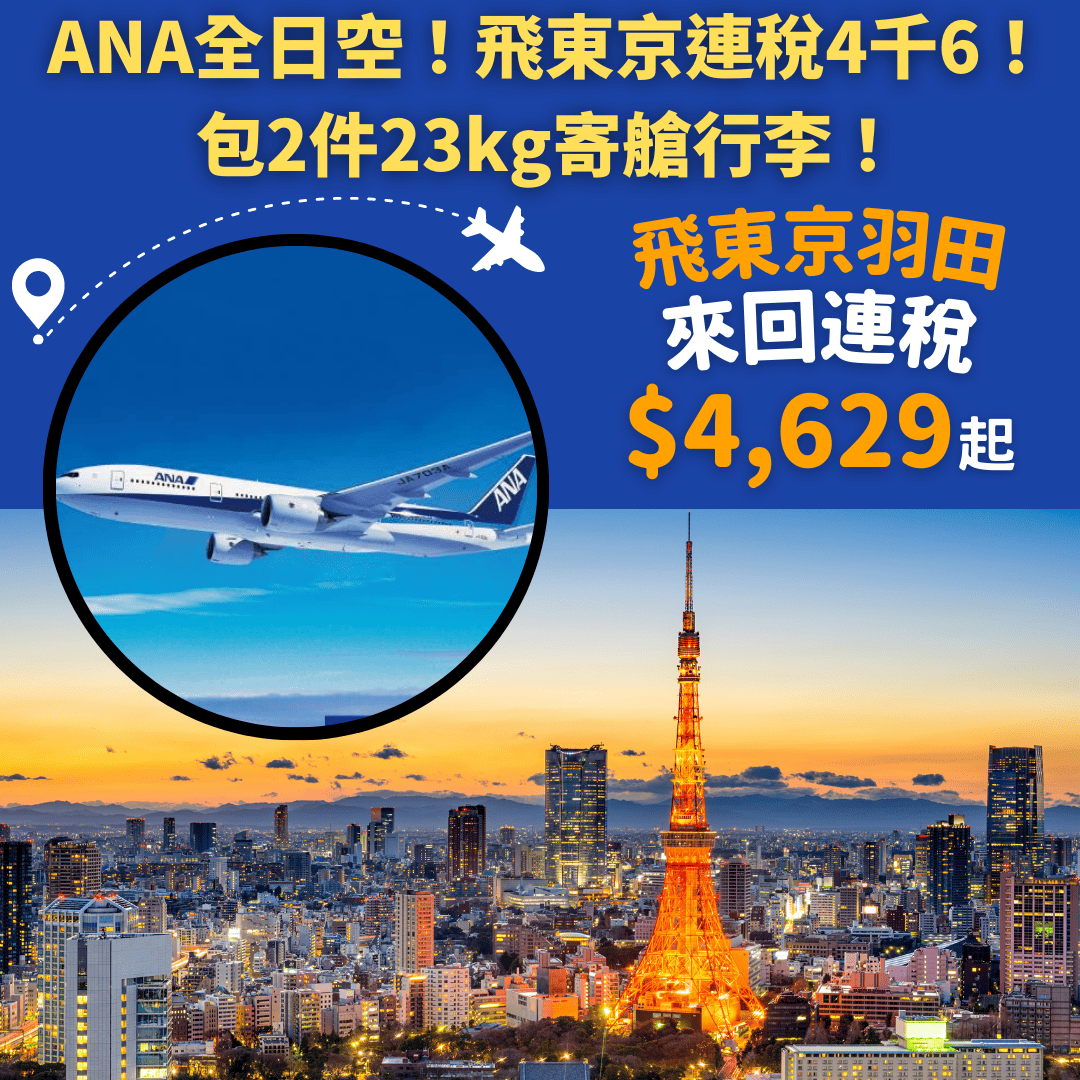 香港飛東京羽田來回連稅只需$4,629起!包咗2件23kg寄艙行李!