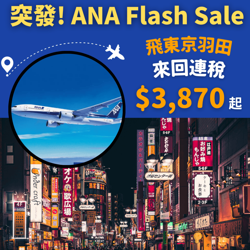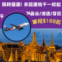預訂東京/首爾/台北/曼谷來回機票滿$1,200(未連稅)即減$180!