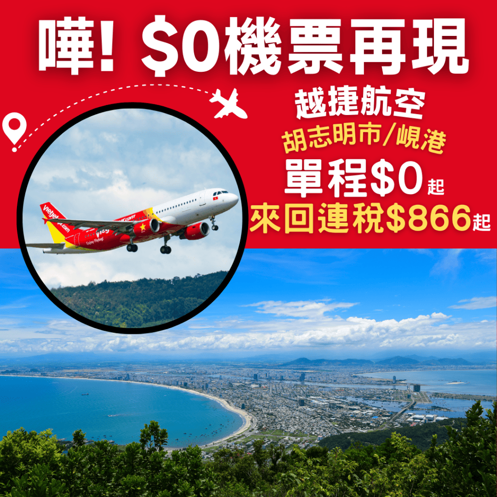 嘩!$0機票再現!香港直飛胡志明市/峴港$0,來回連稅$866起 – 越捷航空 Vietjet Air (優惠至4月4日)