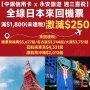 【中銀信用卡 x 永安旅遊 週三喜飛】全線日本來回機票滿$1,800(未連稅)即減$250!