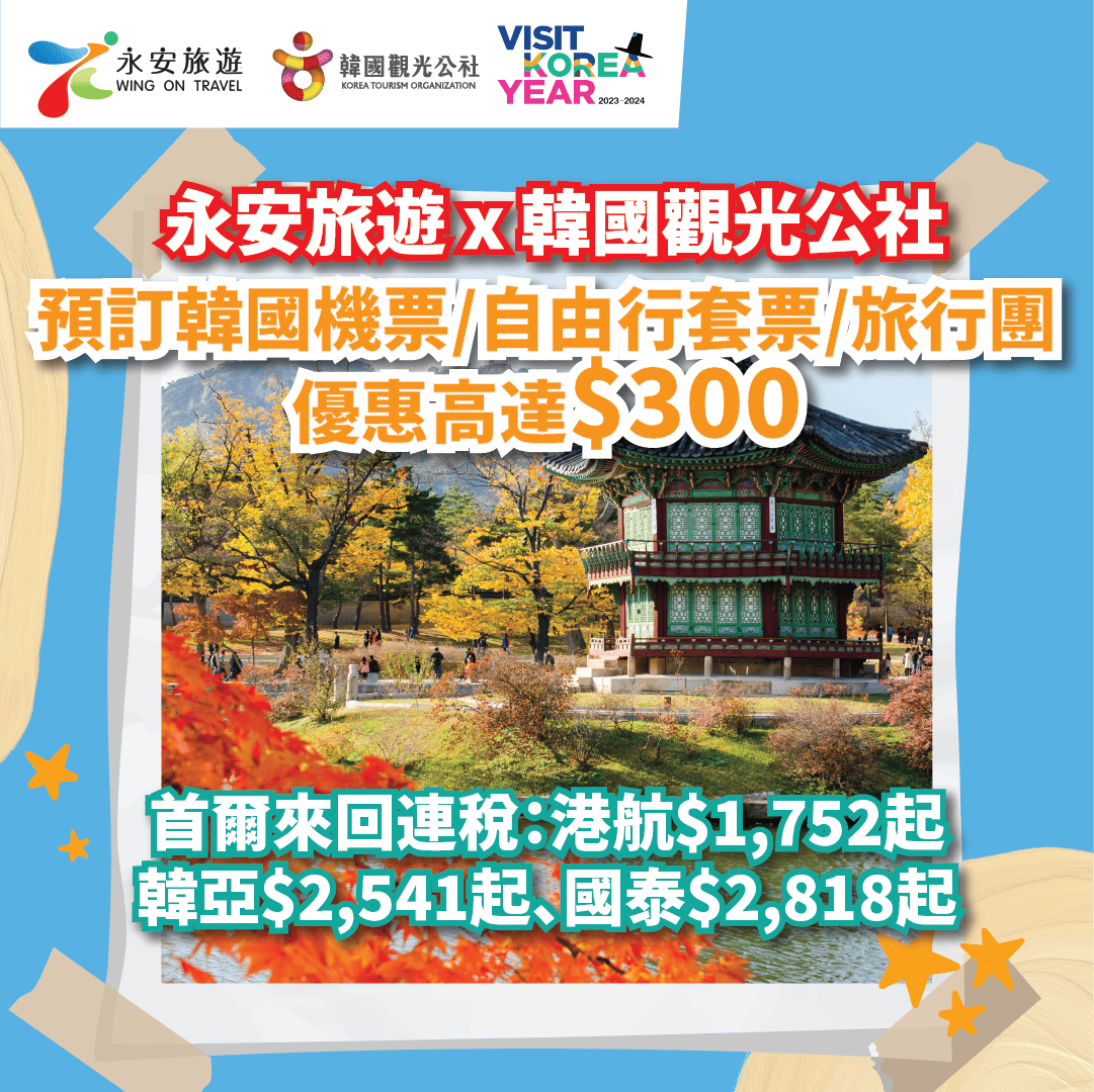 喺大韓官網/手機App輪入折扣代碼【KEHKG8】購買香港出發前往韓國機票可享92折優惠!