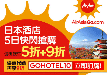 日本酒店限時優惠:https://www.airasiago.com/zh-hk/p/japan_5days_sale_aug14