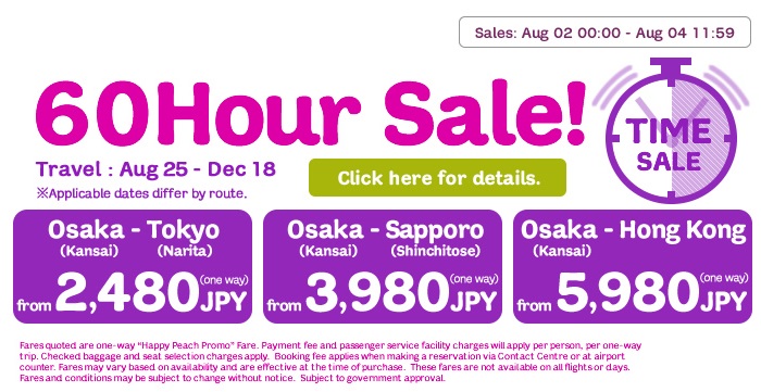 HK Express推出左優惠,樂桃日本都會係今晚11點(8月1日)推出限時60小時優惠