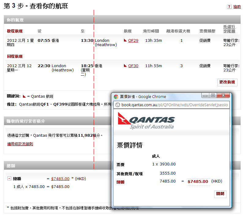 大家可上 Qantas官網 查一下航班機位和訂購。