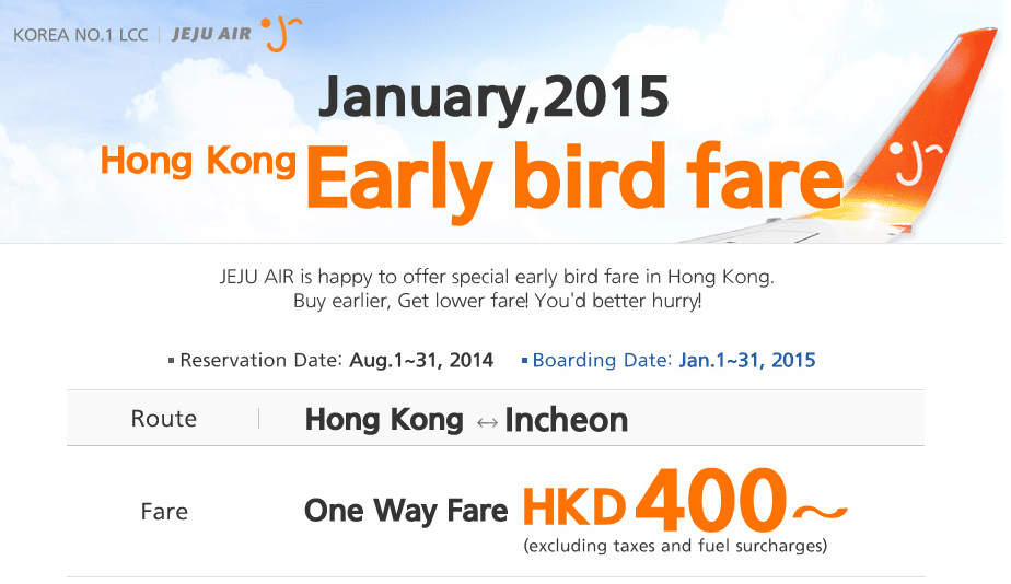 抵呀!1月份出發!可凌晨機去晚機返!香港往返首爾只需$850起 – 濟州航空 (優惠至8月31日)