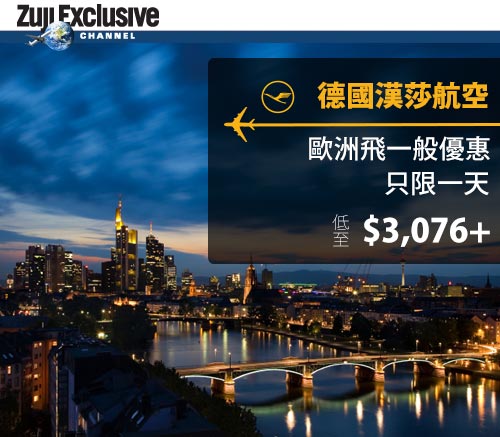 抵呀!ZUJI限時優惠!香港往返歐洲各地只需$3,076起 – 德國漢莎航空 (優惠至8月8日11:59pm)