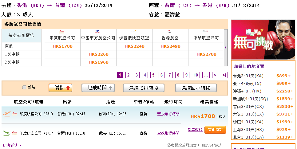 大家最好比較埋其他航空公司好似濟州航空、真航空、Eastar Jet同HK Express,價錢同印航應該差不多