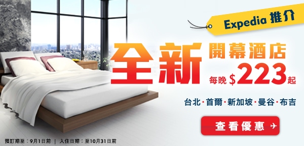Expedia.com.hk 今日推出左首爾、台北、布吉、曼谷新酒店優惠,大家可以用埋10%折扣代碼再減