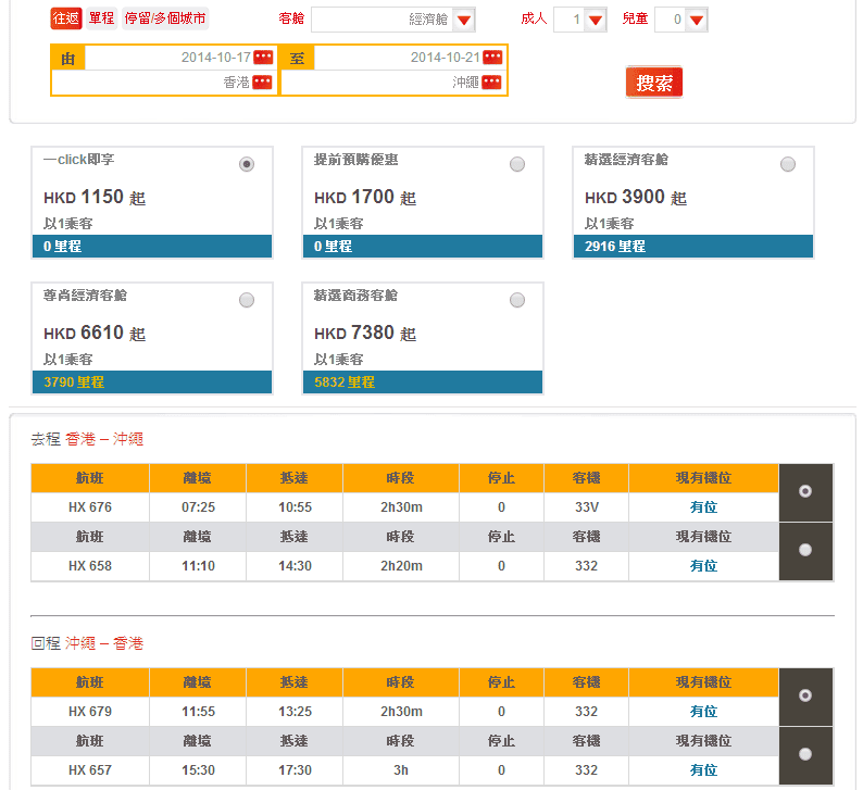 回程限坐HX681 11:55-13:25,加多$300回程可以揀 HX657 15:30-17:30