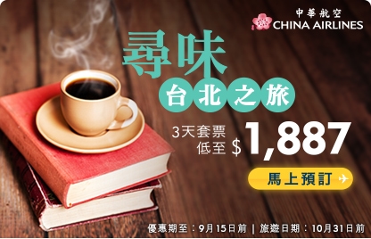 抵玩台北套票!11月30日前出發!台北3日2夜套票每人連稅只需$1,483起 – Expedia.com.hk (優惠至9月15日)