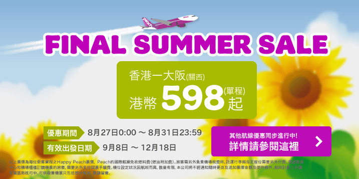 另一廉航HK Express而家都做緊Mega Sale,大家可以比較一下,可以去程樂桃,回程HK Express都得 (詳情:https://www.meethk.com/?p=21180)