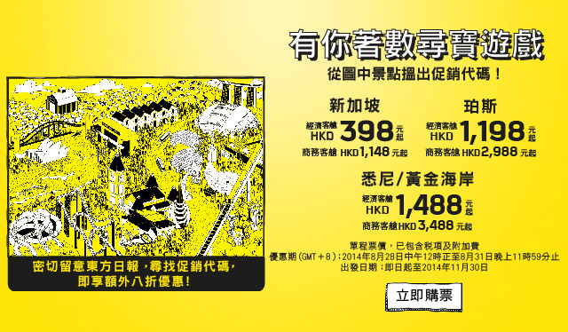 香港飛珀斯單程連稅$1,199,來回連稅$2,654(已包去程Scoot-Thru轉機服務)