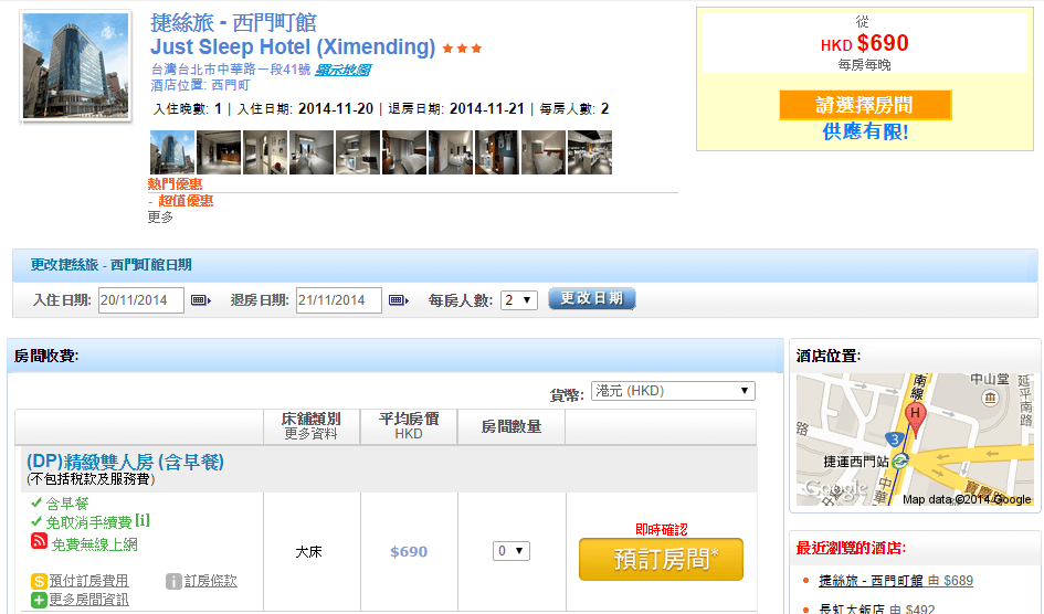 限時台灣酒店優惠!台北捷絲旅-西門町館每晩只需$724起(已包稅) – Priceline HK (優惠至9月11日)