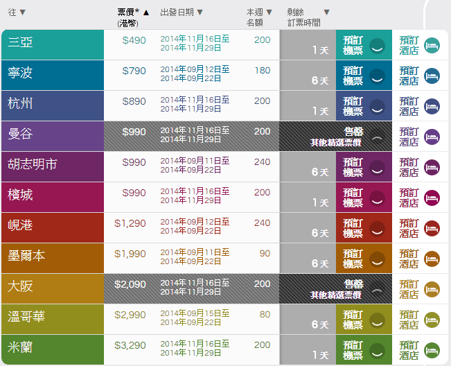 確實既出發日期就要到一陣8點由國泰港龍公佈,大家準時搶飛啦