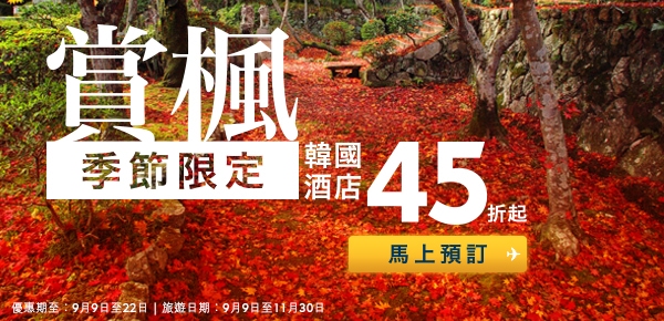 Expedia.com.hk 今日推出左秋訪韓楓酒店優惠,優惠高達四五折