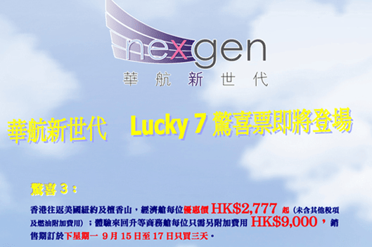 華航將會係星期一推出Lucky 7驚喜票第三擊優惠