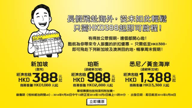 訂票日期:即日至2014年10月2日