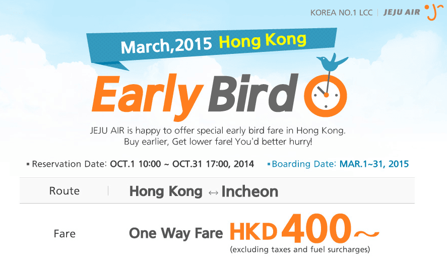 3月份出發!香港往返首爾只需$850起 – 濟州航空 (優惠至10月31日)