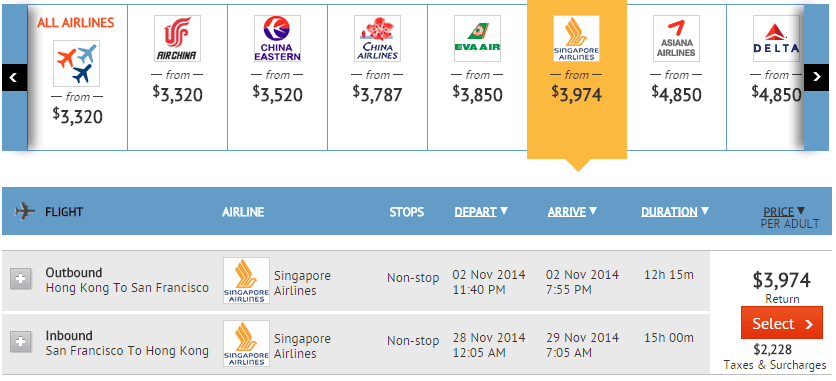 機票只需$3,974 + $2,228(稅) = 機票連稅$6,202