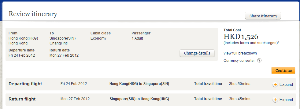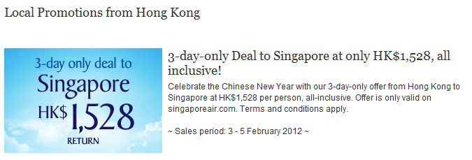 二月份出發 香港往返新加坡每人只需$1,528 (已包稅) ,優惠得三日去到今個星期日