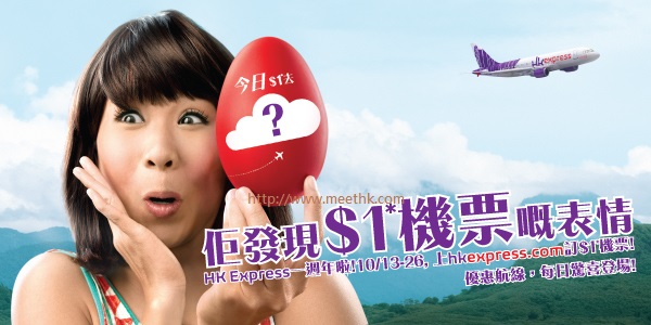 HK Express一連兩個星期(10月13日至10月26日)每日都會推出唔同航點單程$1機票優惠,唔岩心水既話,可以再等其他航點$1機票